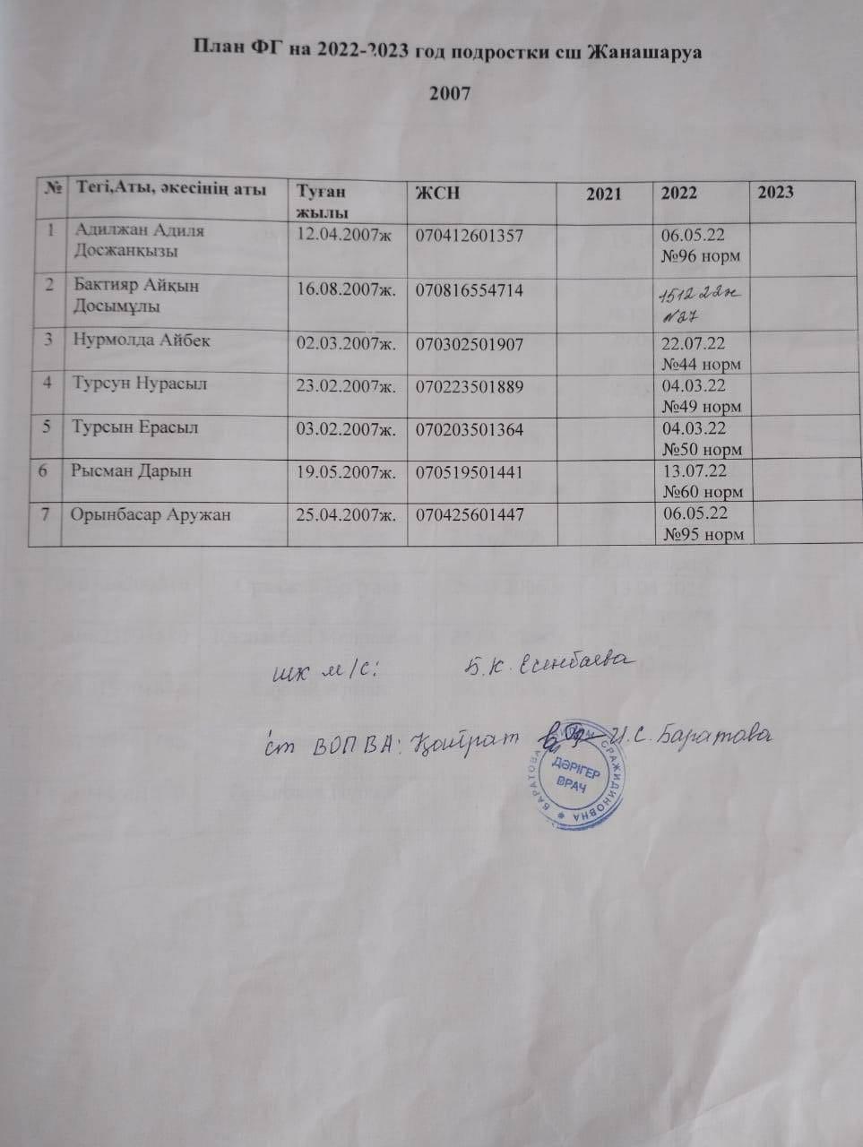 Мектеп медбикесінің жұмысы » Жаңашаруа орта мектебі