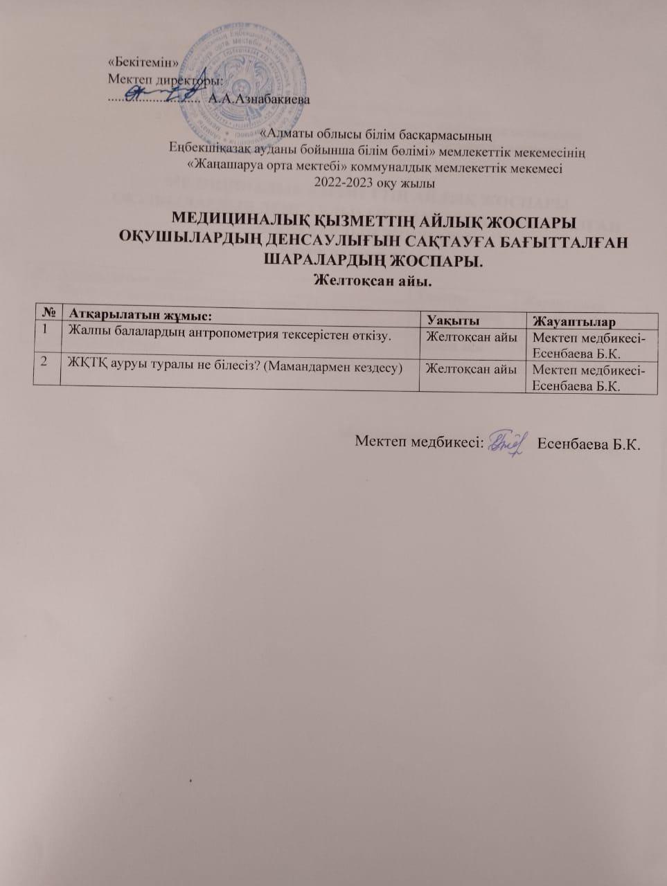 Мектеп медбикесінің желтоқсан айындағы жоспары » Жаңашаруа орта мектебі
