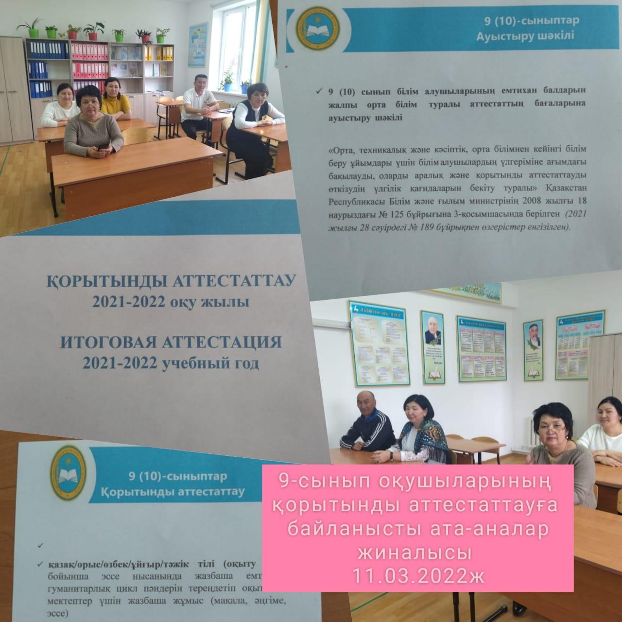 Қорытынды аттестаттау туралы ата-аналар жиналысы 9- сынып