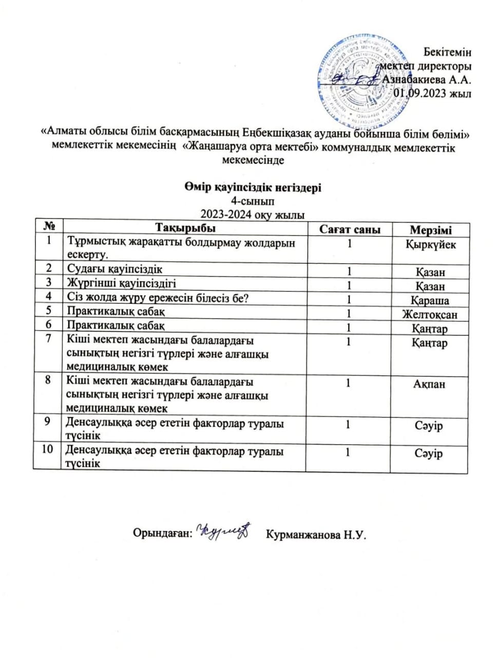 Өмір қауіпсіздік негіздері 4-сынып » Жаңашаруа орта мектебі
