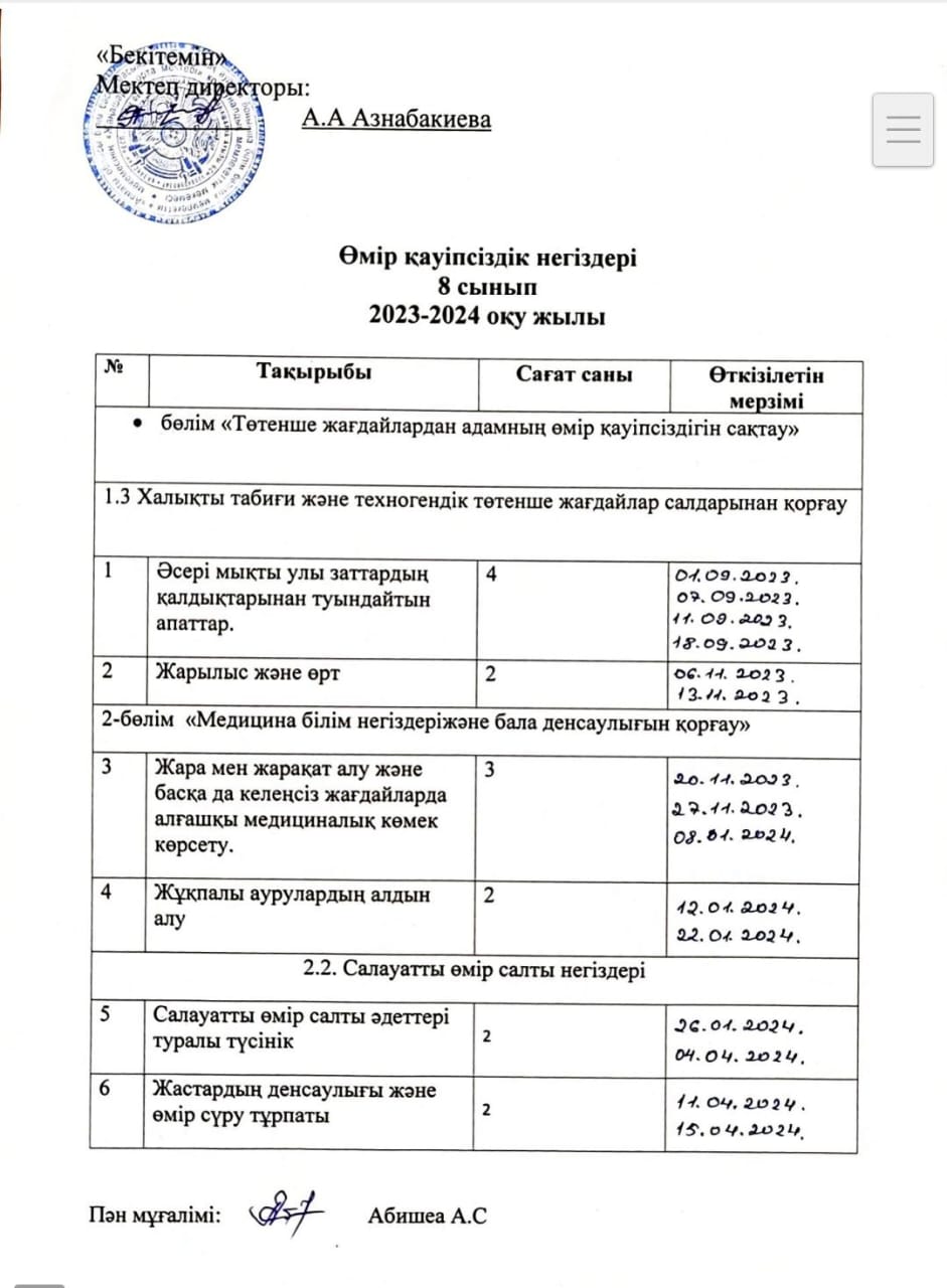 Өмір қауіпсіздік негіздері 8-сынып » Жаңашаруа орта мектебі