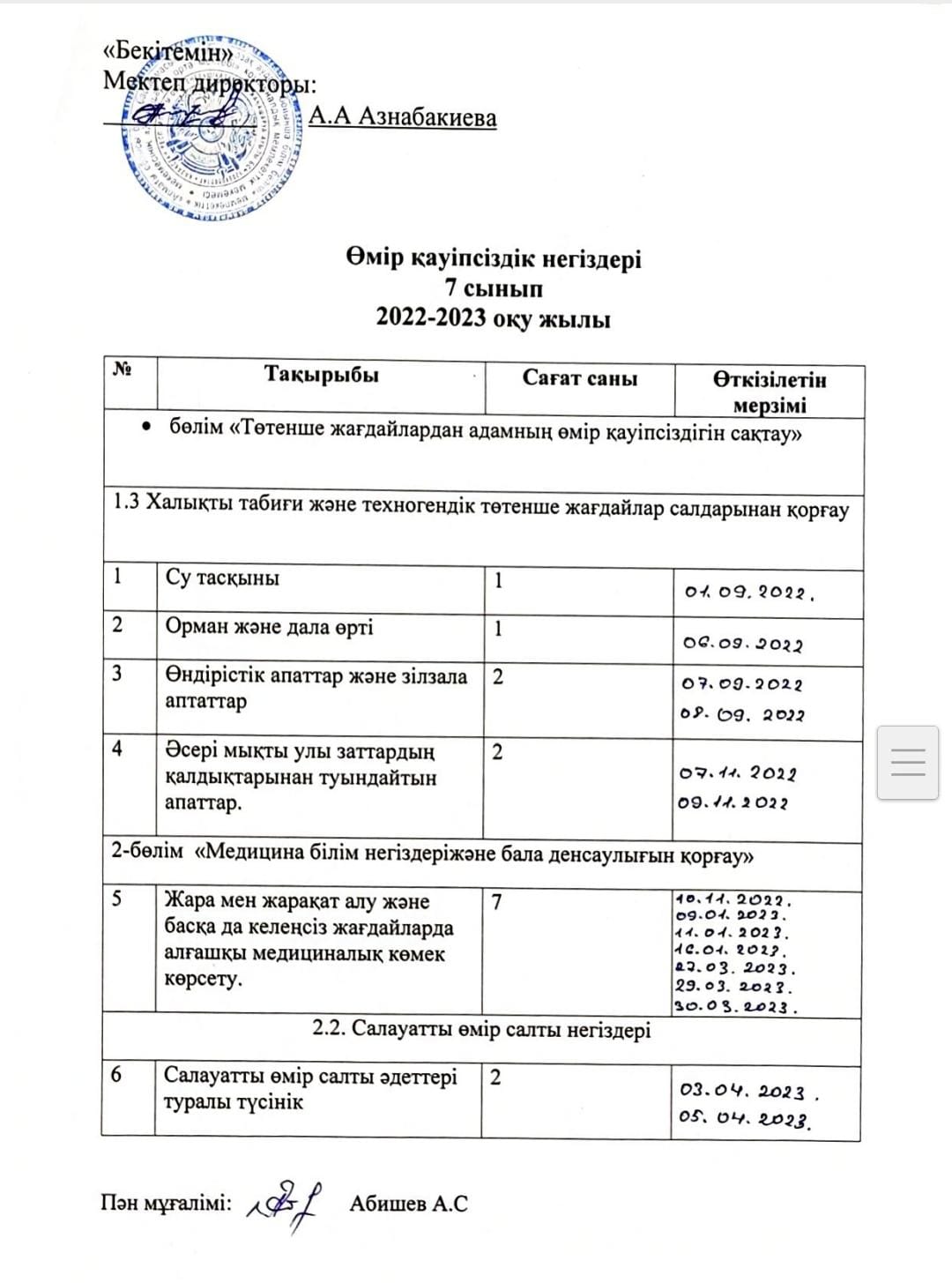 Өмір қауіпсіздік негіздері 7-сынып » Жаңашаруа орта мектебі
