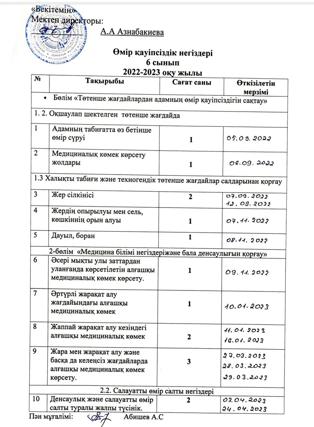 Өмір қауіпсіздік негіздері 6-сынып » Жаңашаруа орта мектебі