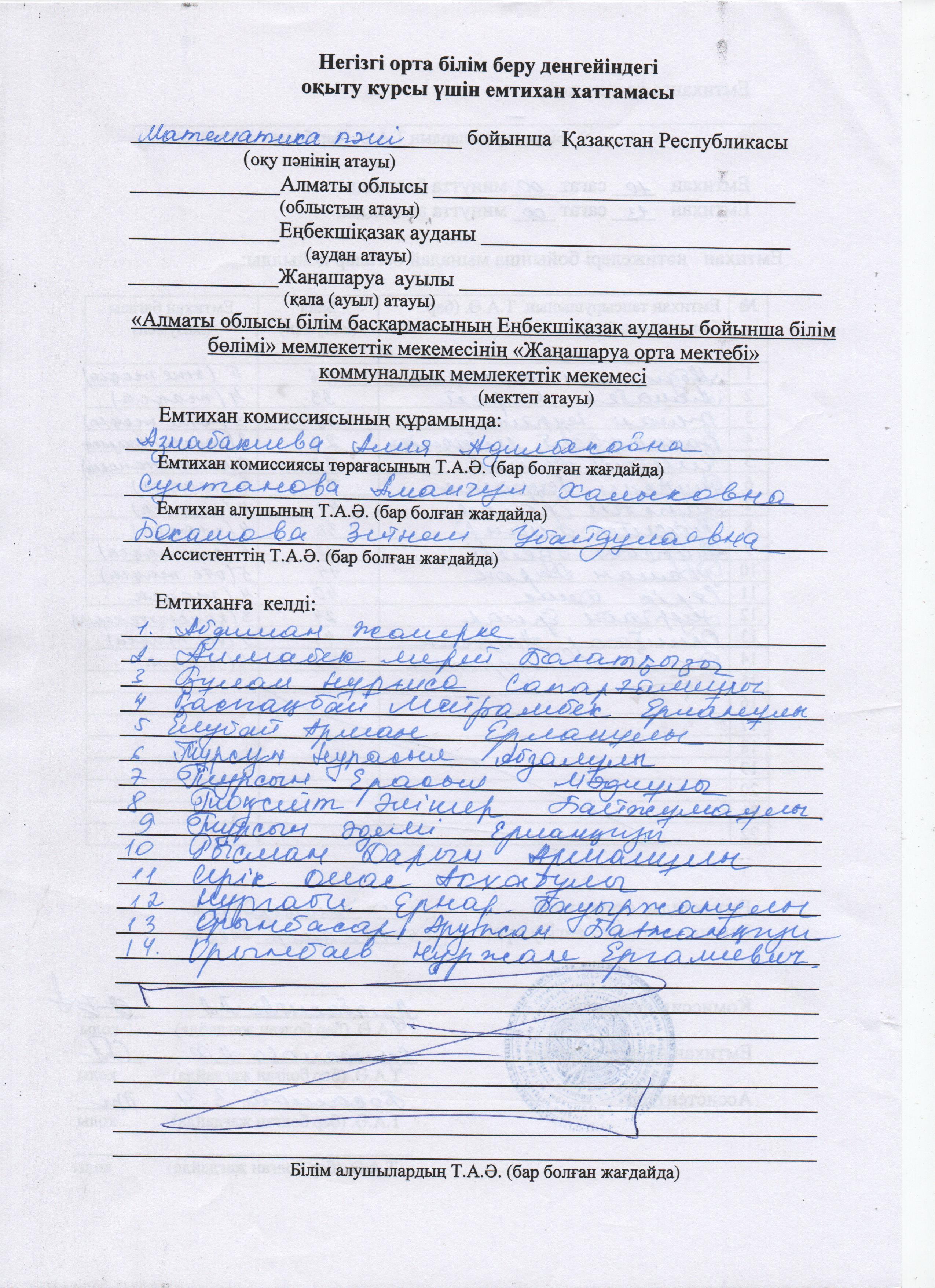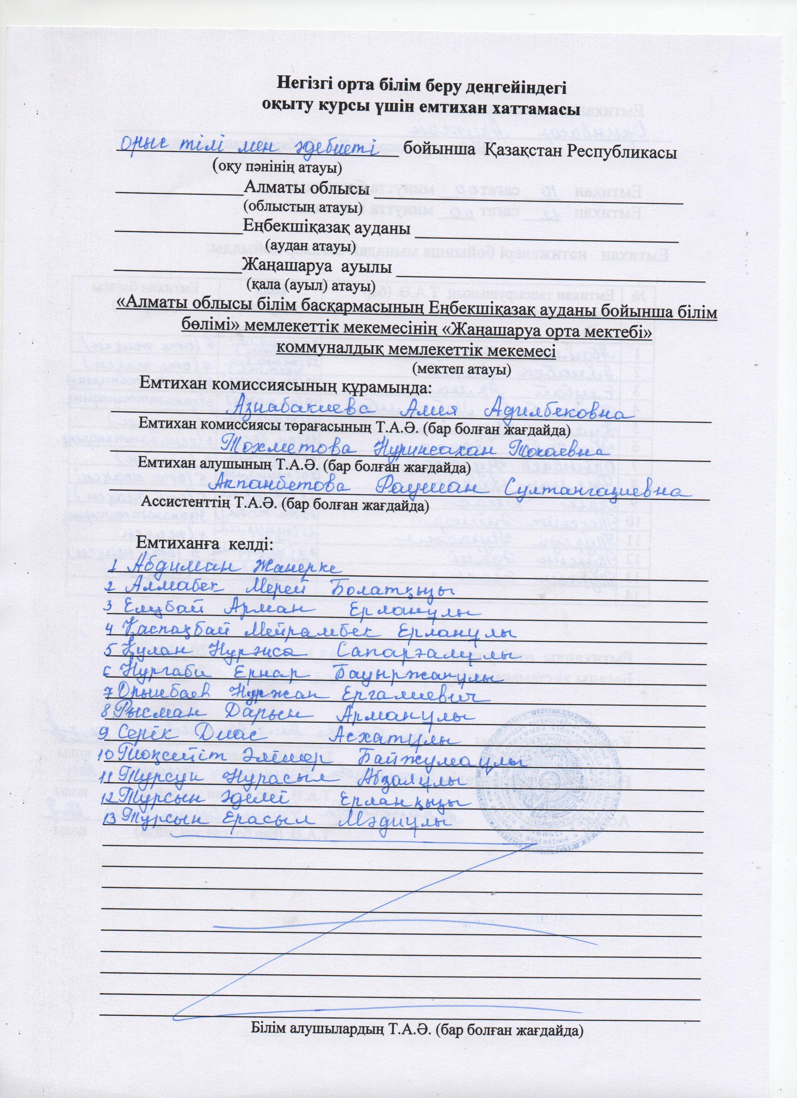 қорытынды аттестатау хаттамалары 9-сынып » Жаңашаруа орта мектебі