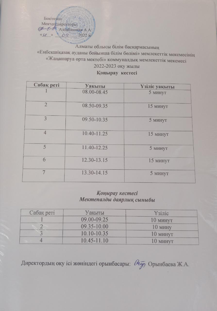 2022-2023 оқу жылы қоңырау кестесі » Жаңашаруа орта мектебі