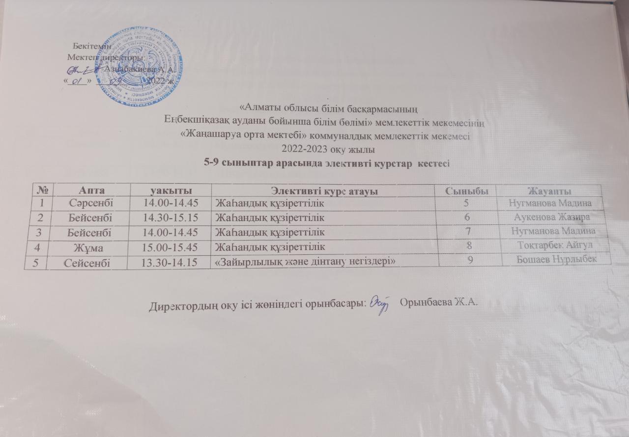 2022-2023 оқу жылы 5-9 сыныптар арасында элективті курстар кестесі » Жаңашаруа орта мектебі
