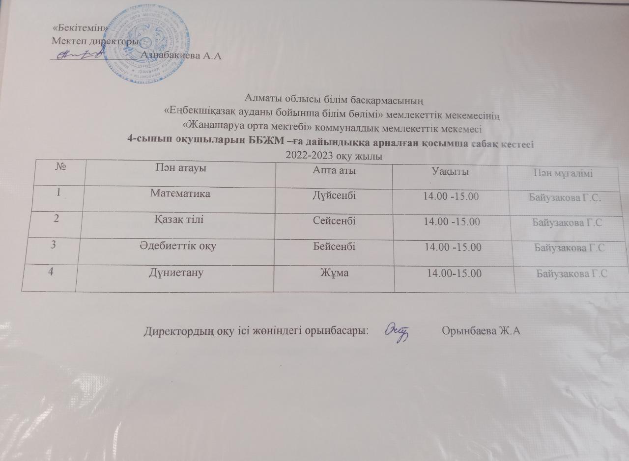 09 сентябрь 2022 0 1 2 3 4 5 2022-2023 оқу жылы 4 - сынып оқушыларын ББЖМ-ға дайындыққа арналға қосымша сабақ кестесі