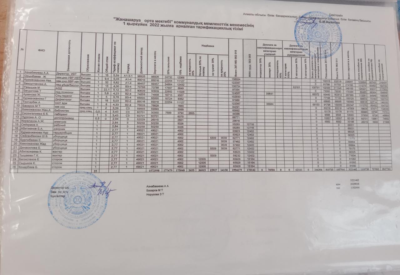 2022-2023 оқу жылылға арналған тарификациялық тізім » Жаңашаруа орта мектебі