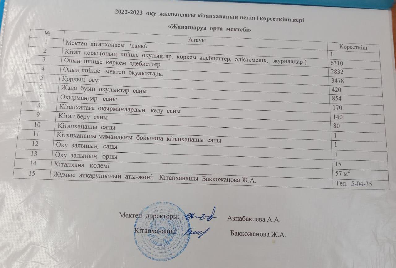 2022-2023 оқу жылындаға кітапхананың негізгі көрсеткіштері » Жаңашаруа орта мектебі